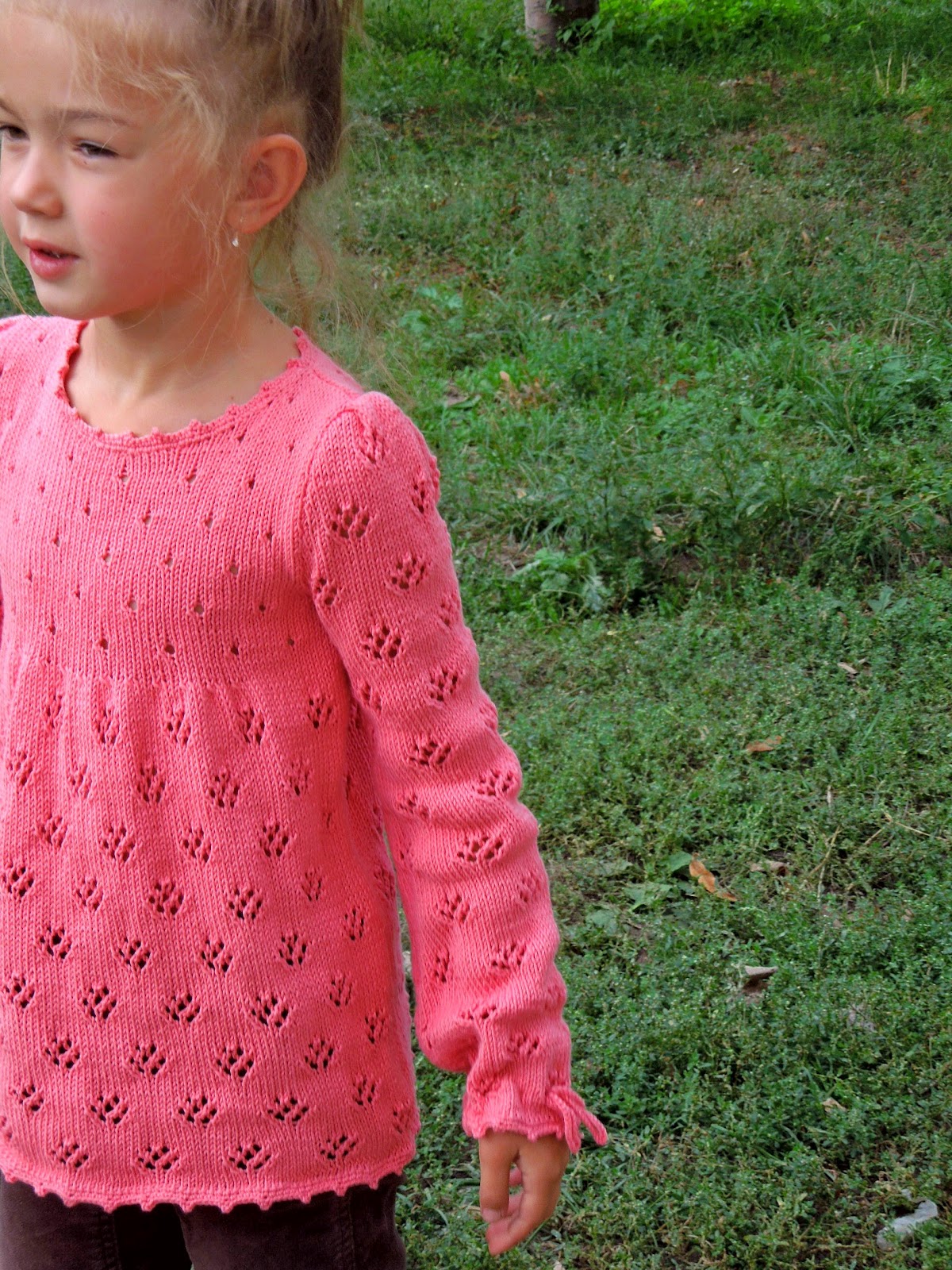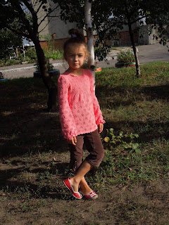 Ириша, чудесная кофточка! Как доченьке цвет к лицу! И вообще, она у тебя уже такая большая! Удивительно :)
